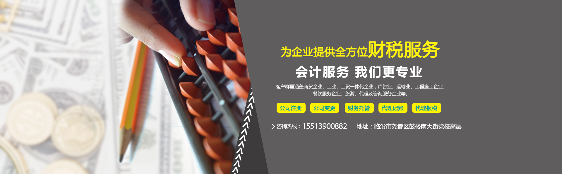 山西華夏智誠企業(yè)管理咨詢有限公司創(chuàng)立于2017年, 是為企業(yè)提供*********財(cái)稅服務(wù)的專業(yè)服務(wù)平臺。本著“誠信為本,服務(wù)至上”的企業(yè)理念,有著專業(yè)精深的專業(yè)水平和豐富經(jīng)驗(yàn),為企業(yè)進(jìn)行會計(jì)服務(wù)。客戶群里涵蓋商貿(mào)企業(yè)、工業(yè)、工貿(mào)一體化企業(yè),廣告業(yè)、運(yùn)輸業(yè)、工程施工企業(yè)、餐飲服務(wù)企業(yè)、旅游、代理及咨詢服務(wù)企業(yè)等。